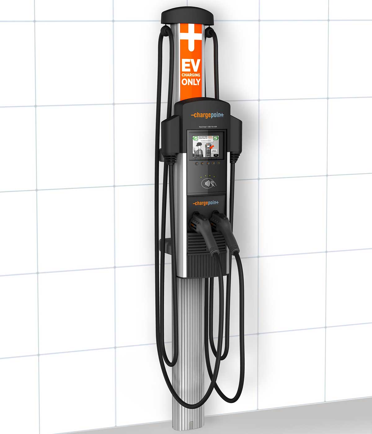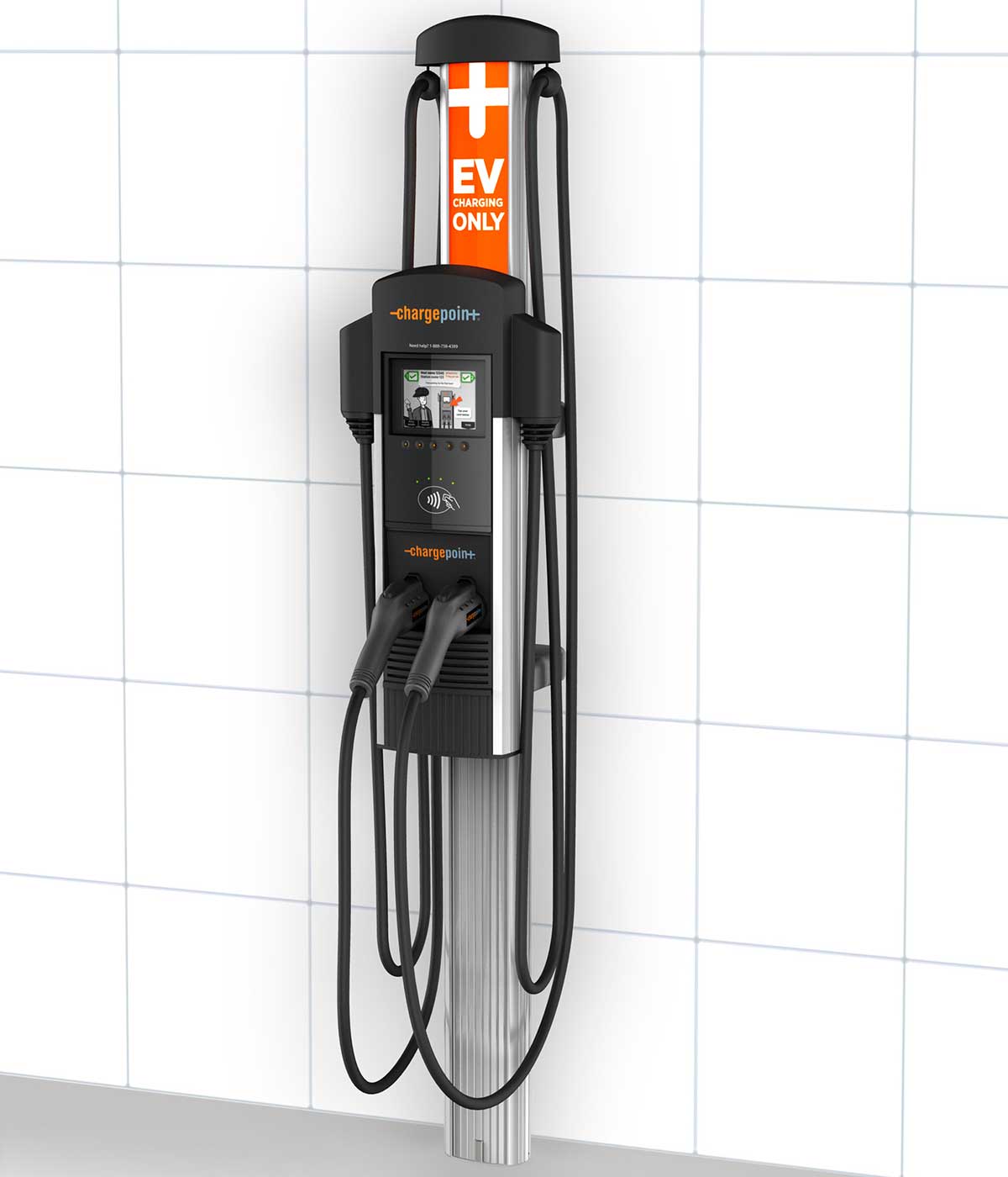 Put a true commercial-grade charger in front of your building, in your parking lot, or even at your home. The ChargePoint® CT4027-GW1 is a dual-port, 23 foot cables, wall-mount member of the CT4000 family—a Level 2, 7.2 kW charging station with integrated 4G LTE connectivity, self-retracting 23′ cable management and full support for ChargePoint’s cloud platform.